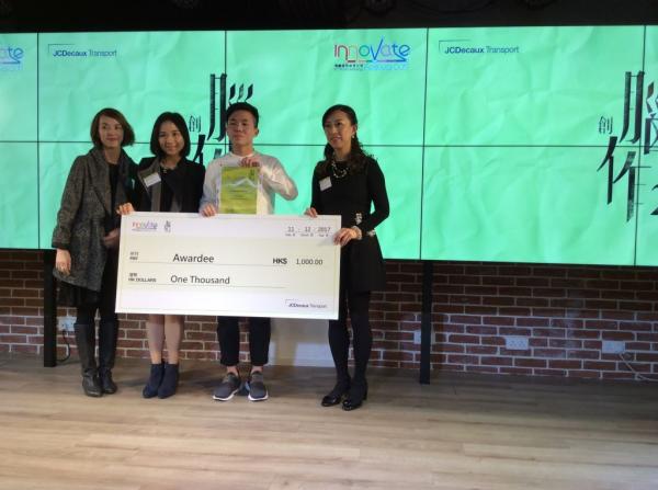 设计学(视觉传意)二年级同学陈浩泓于户外媒体公司德高贝登举办的2017年度「港铁广告创意巡礼创意设计比赛」中获优异奖。颁奖典礼于2017年12月11日在湾仔The Hub举行。恭喜浩泓在大约100支参赛队伍中脱颖而出,成为11位得奖者之一。
